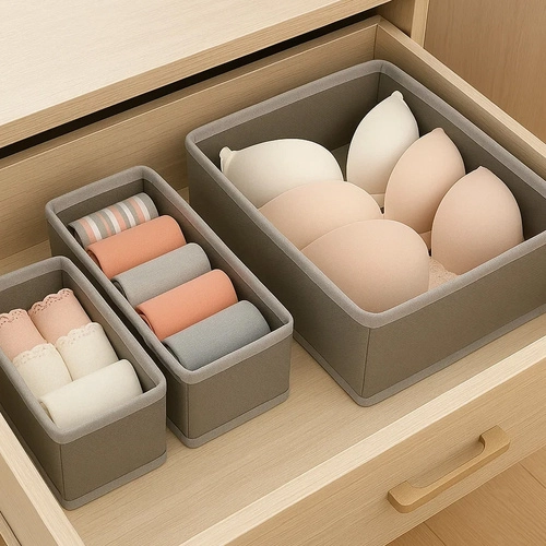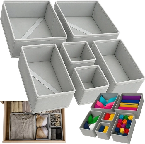 Udržujte svoje prádlo a doplnky vždy na svojom mieste s touto praktickou sadou organizérov. Obsahuje 6 kusov rôznych veľkostí, ktoré zaisťujú univerzálne použitie a ľahké čistenie. Štýlové, svetlo šedé prevedenie pridáva eleganciu a ľahko sa hodí do akejkoľvek skrine. Každý organizér je navrhnutý tak, aby bol stabilný a vytrvalý.