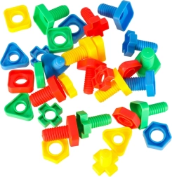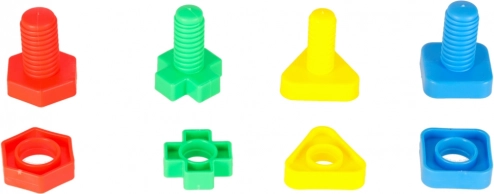 Jednotlivé skrutky a matice majú rôzne tvary, ktoré je potrebné správne spárovať. Vďaka jednoduchému princípu je stavebnica vhodná pre predškolákov a skvele podporuje priestorovú predstavivosť a trpezlivosť.