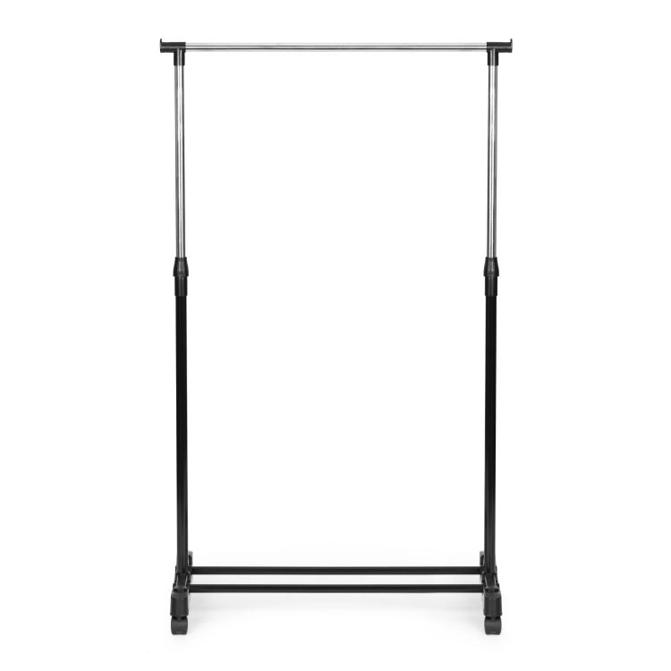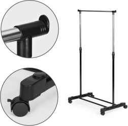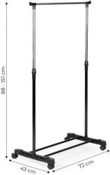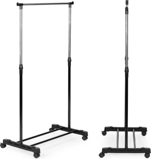 Kapsy na koncoch nosnej tyče vešiaka zabezpečujú bezpečnosť a eliminujú riziko nežiaduceho skĺznutia a poškodenia oblečenia. Tyč tiež slúži ako háčik pre zavesenie tašiek, šál, klobúkov a ďalších drobností. Šatníkový vešiak je vybavený štyrmi kolieskami, z ktorých dve sú zaisťovacie. To umožňuje jednoduchý pohyb a flexibilnú organizáciu priestoru. Je to praktické riešenie, ktoré umožňuje ľahké prispôsobenie vešiaka vašim potrebám.