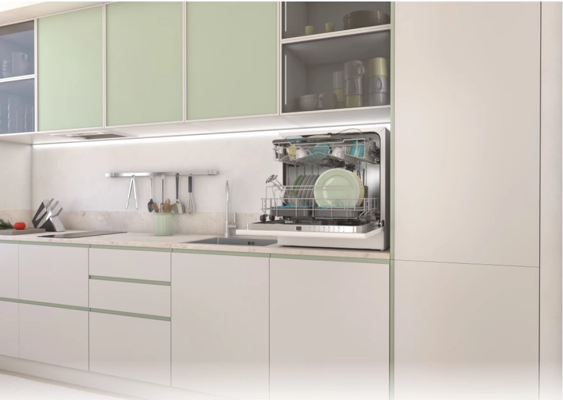 Kompaktná umývačka riadu je ideálnym riešením pre malé priestory. Vďaka svojej úspornej veľkosti poskytuje vysoký výkon pri umývaní vášho riadu.