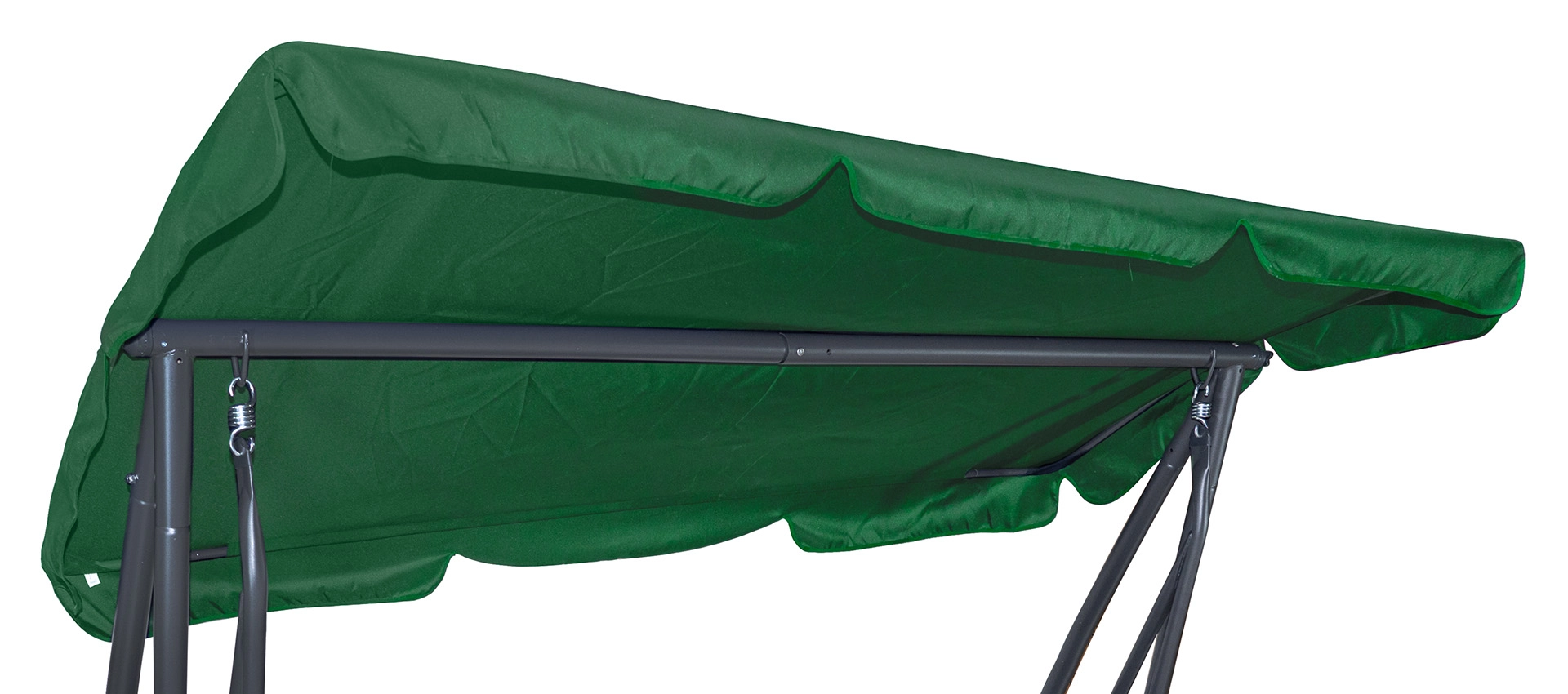 Strecha v jednoliatej zelenej farbe dodá vašej hojdačke svieži a elegantný vzhľad. Okrem ochrany má strecha tiež dekoratívne volániky, ktoré pridávajú štýl.