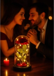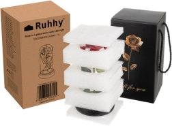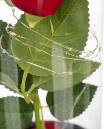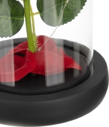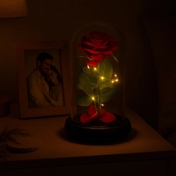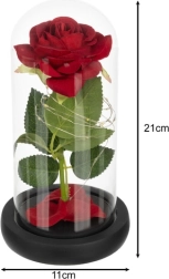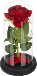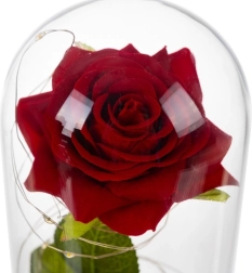 Táto nádherná ruža je umiestnená v kvalitnej sklenenej kupole a je navrhnutá tak, aby zachovala svoj tvar a farbu na večnosť. Osvetlenie pomocou LED diód vytvára teplé biele svetlo, ktoré dodáva ruži výnimočný vzhľad.