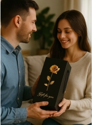 Dodávaná v štýlovom čiernom darčekovom boxe s dizajnom zlatej ruže a nápisom 'Gift for you'.