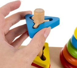 Zoznámte sa s tromi základnými tvarmi: kruh, trojuholník a obdĺžnik. Hračka obsahuje základňu a množstvo dielikov, ktoré možno ľahko manipulovať a skladať.
