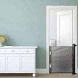 Praktická výsuvná bezpečnostná bránka so sieťovinou chráni deti aj domáce zvieratá pred nebezpečnými zónami v domácnosti. Ľahko sa ovláda, šetrí miesto a vďaka čiernemu prevedeniu zapadne do každého interiéru. Rozťahovacia až na 160 cm, výška 86 cm, odolná PVC sieť a pevné kovové a plastové komponenty zabezpečujú spoľahlivú zábranu pri dverách, v chodbách aj pri schodiskách.