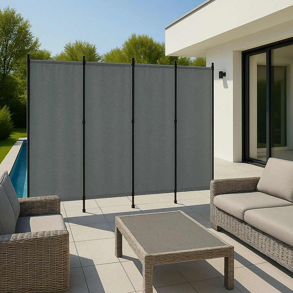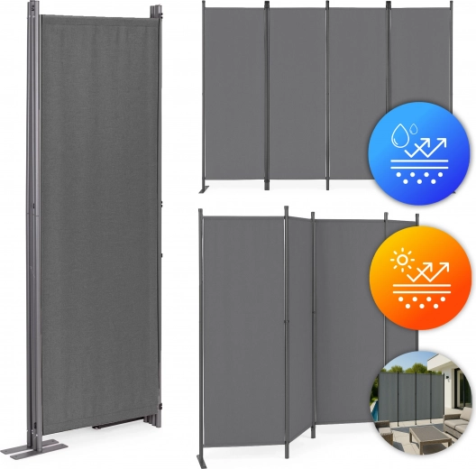 Univerzálna skladacia záhradná priečka MultiGarden je ideálnym riešením pre ochranu a dekoráciu vonkajších priestorov. Je perfektná pre záhrady, terasy či balkóny, poskytuje súkromie a ochranu proti vetru a zároveň slúži ako deliaca priestorová konštrukcia. Vďaka odolnej látke 160 g/m² polyester je priečka odolná voči UV žiareniu a dažďu. Vďaka ľahkej a skladacej konštrukcii ju ľahko premiestnite a umiestnite tam, kde je potrebná. Elegantná sivá farba dodáva štýl, čím je obrazovka praktická aj estetická.