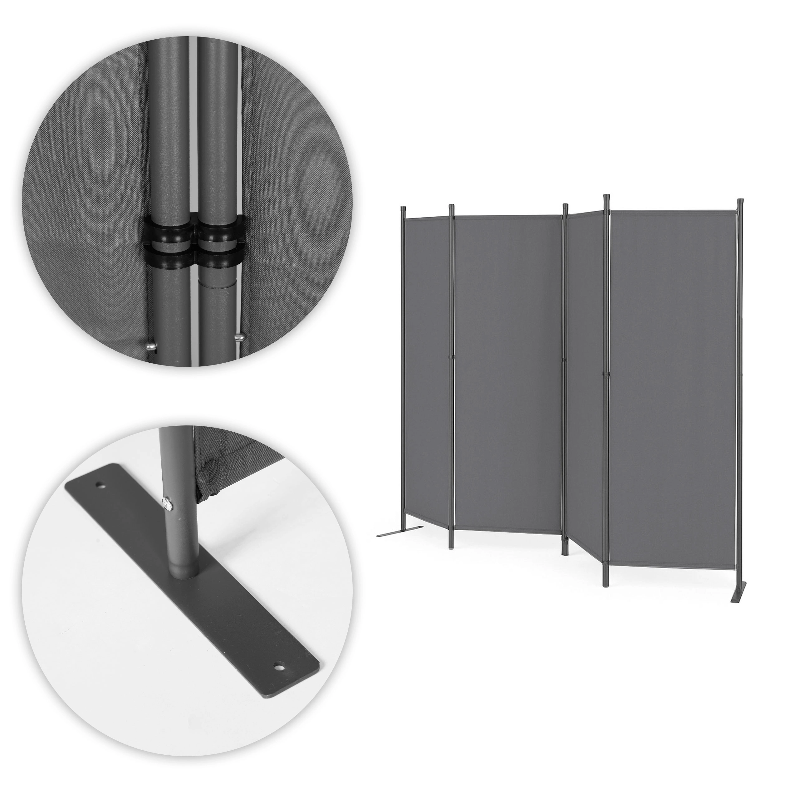 Robustné panelové spojky uľahčujú skladanie a rozkladanie priečky, čo značne uľahčuje každodenné použitie. Stabilná kovová základňa s praktickými otvormi pre kotvenie poskytuje vynikajúcu podporu celej konštrukcie, zabraňuje prevráteniu aj na nerovnom teréne.