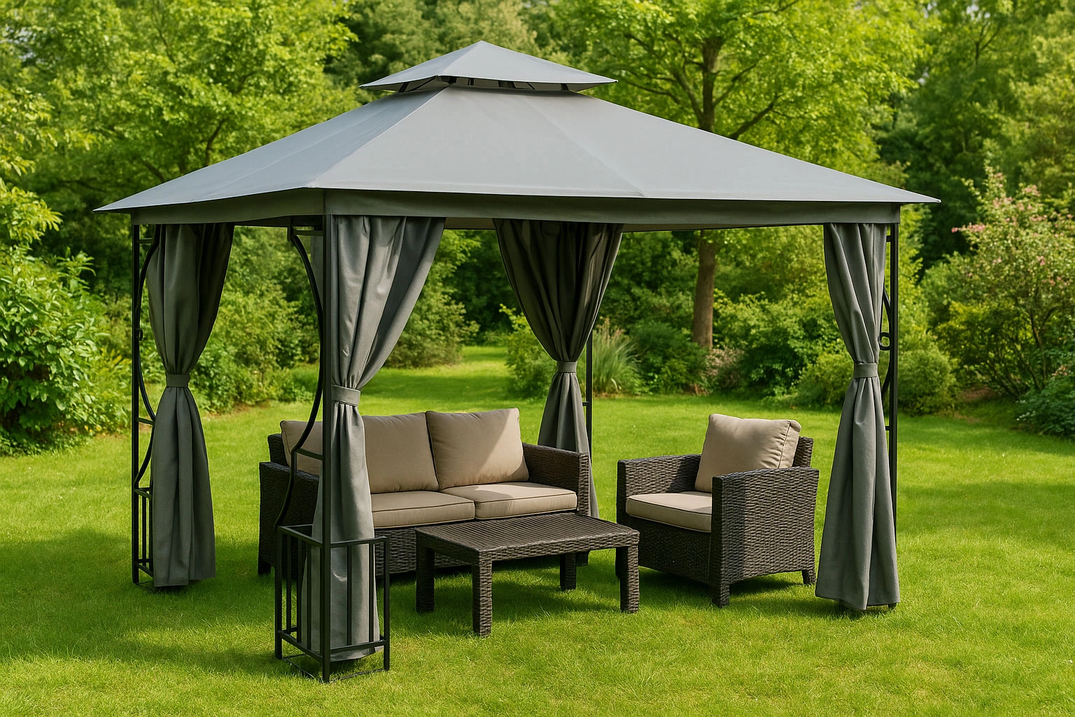 Transformujte svoju záhradu na pohodlnú relaxačnú zónu vďaka tejto robustnej streche pre altán. Poskytuje nielen účinnú ochranu pred slnkom a dažďom, ale aj skvelý spôsob, ako predĺžiť sezónu záhradníčenia. Vytvára krytý priestor ideálny pre grilovanie, záhradné párty alebo leňošenie s knihou. S touto strechou trvá vaša záhradná sezóna od jari až do jesene!