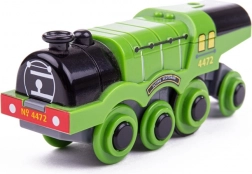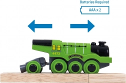 Táto elektrická lokomotíva vychádzajúca z legendárnej britskej parnej mašiny je navrhnutá na bezproblémovú jazdu po drevených tratiach. Zapína sa a vypína jediným tlačidlom ukrytým v komínku a vďaka silnému motoru zvládne ťahať viac vagónikov do kopca. Realistický zvuk a zelené prevedenie zaujmú malých milovníkov vlakov.
