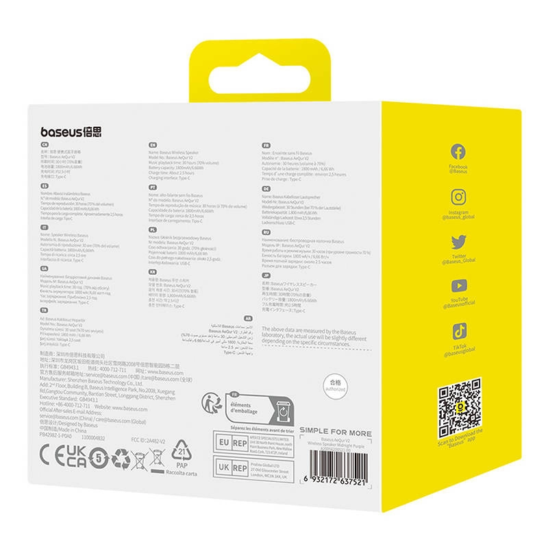 Vďaka kompaktnému dizajnu a fialovej farbe je reproduktor ideálnym spoločníkom pre každú príležitosť, či už je to piknik na pláži, večierok s priateľmi alebo relaxácia pri bazéne. Dotykový panel umožňuje ľahké ovládanie, prepínanie skladieb a výber režimov prehrávania.