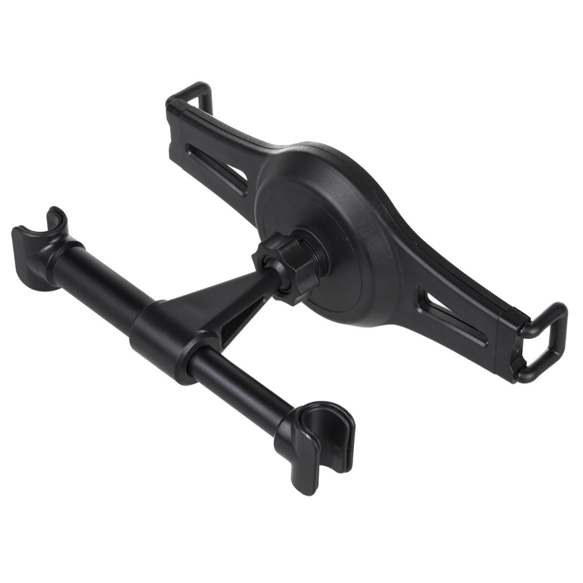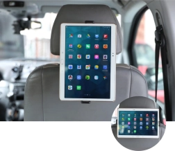 Univerzálny držiak na tablety a e-knihy určený na montáž na opierke hlavy v aute. Umožňuje ľahké upevnenie pre stabilné a bezpečné použitie.