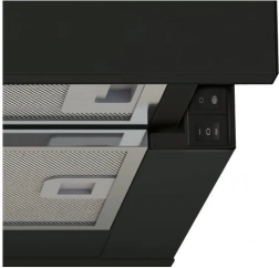 Odsávač sa vyznačuje moderným čiernym a šedým prevedením, ktoré dokonale zapadne do každej kuchyne.