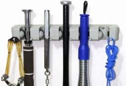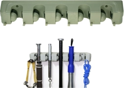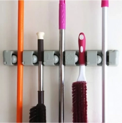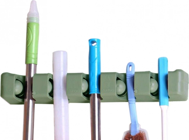 Nástenný držiak na mopy a metly je ideálny pomocník pre každú domácnosť či garáž. S piatimi nastaviteľnými slotmi a šiestimi malými háčikmi ponúka dostatok priestoru pre uloženie kief, mopov a ďalších čistiacich nástrojov. Vyrobený z odolného plastu, pevne drží rôzne priemery tyčí, takže sa hodí pre širokú škálu domácich i záhradkárskych potrieb.