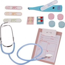 Set obsahuje rôzne nástroje vrátane stetoskopu, teplomera a zubného modelu, čo poskytuje dieťaťu kompletný zážitok z hry na lekára.