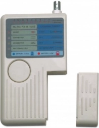 Tento tester káblov 4 v 1 efektívne testuje káble typu RJ11, RJ45, USB a BNC len stlačením tlačidla. Je vybavený LED diódami na signalizáciu spojenia a prípadných chýb.