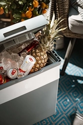 Udržujte svoje nápoje chladné aj na cestách s našou 28-litrovou prenosnou chladničkou, ktorá ponúka flexibilné možnosti pripojenia a jednoduchú prenosnosť.