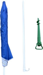 Ostrá špička a robustná konštrukcia umožnia rýchle ukotvenie do piesku alebo pôdy a držia slnečník pevne na mieste.
