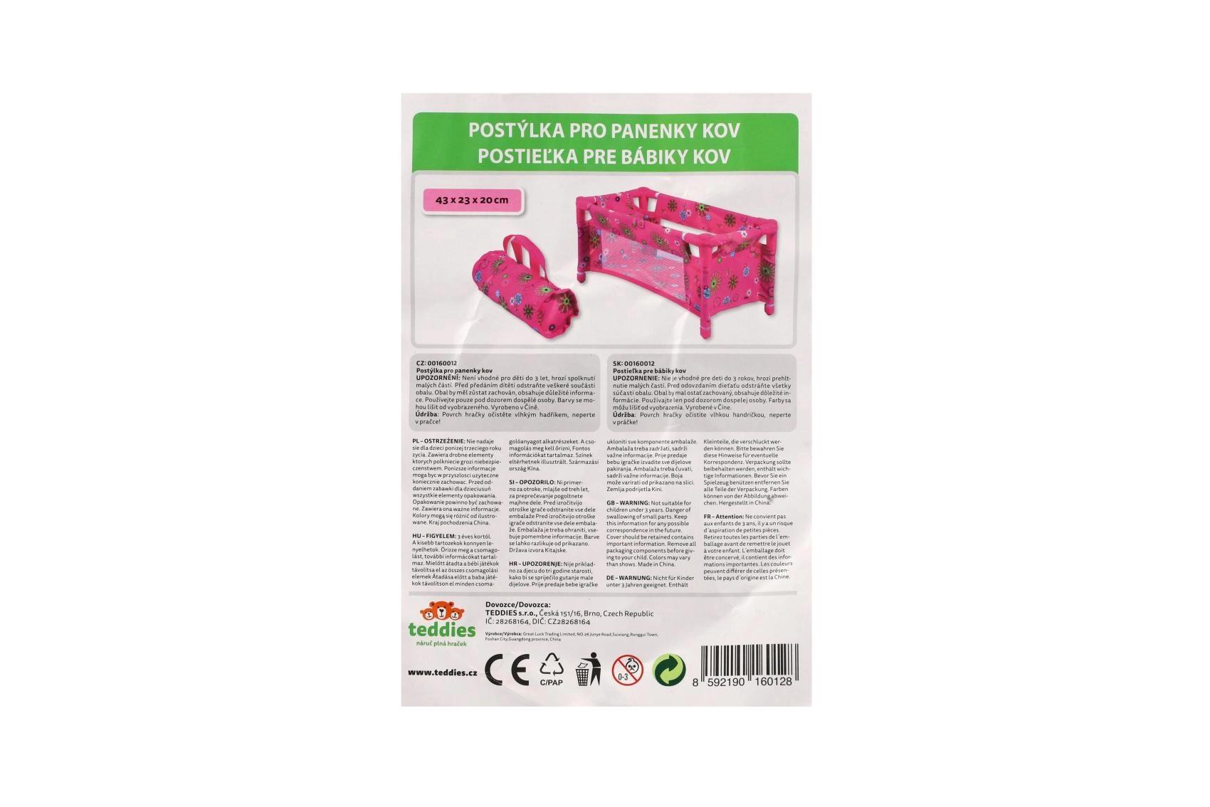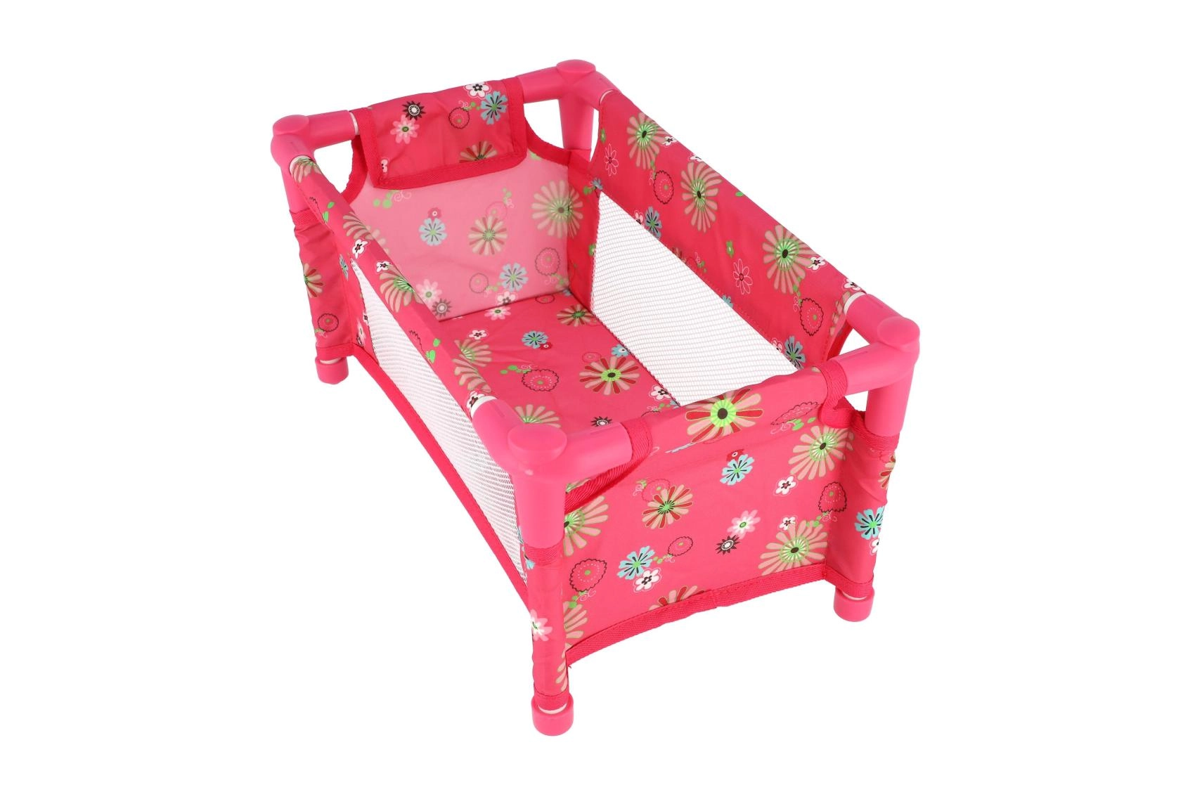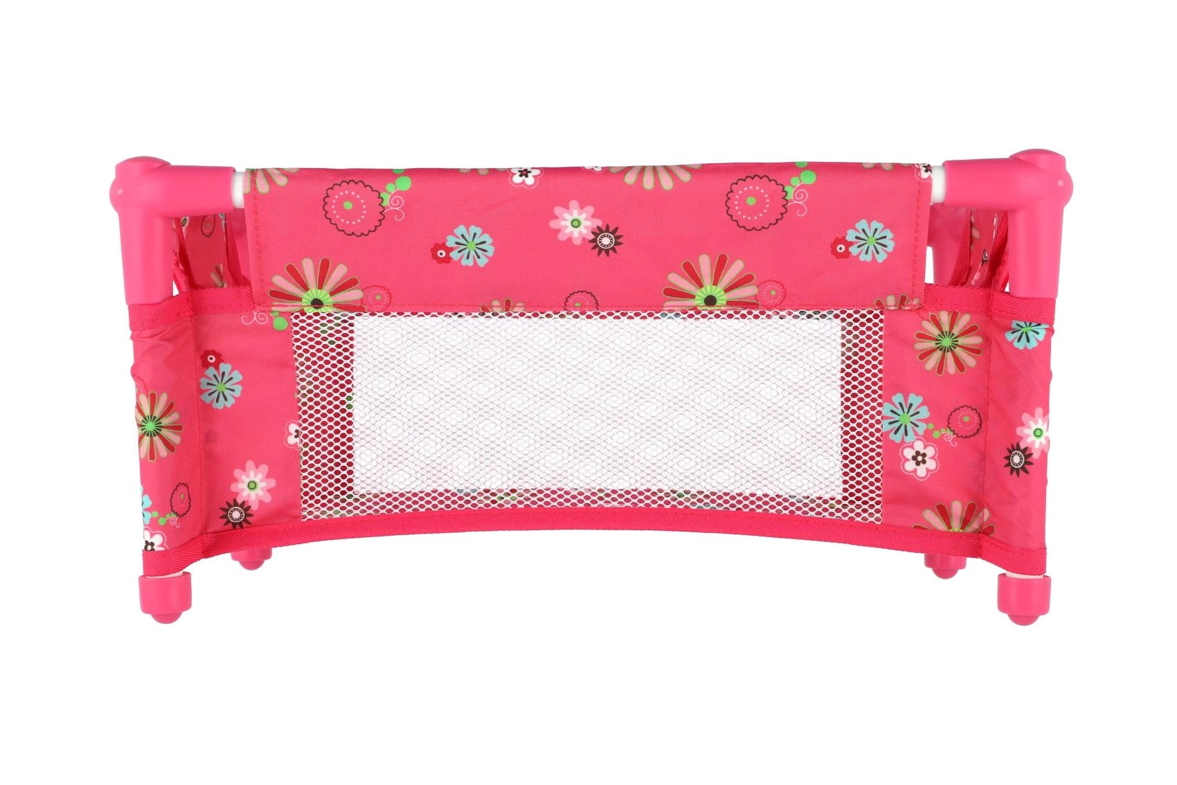 Robustná, pritom ľahká konštrukcia z trubiek a textilnými panelmi zvládne každodenné hranie. Postieľka je bez matraca (bez pevného dna), čo z nej robí bezpečný a flexibilný doplnok do detskej izbičky. Veselý kvetinový motív v ružových tónoch poteší každú malú mamičku.