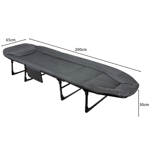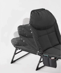 Ležadlo je vybavené 5-stupňovou polohovateľnou opierkou hlavy, ktorá umožňuje nastaviť ideálny uhol od 0° do 90° pre maximálny komfort. Ergonomický a mäkko polstrovaný vankúš zabezpečuje pohodlnú oporu, zatiaľ čo vysokokvalitný materiál Oxford prispieva k príjemnému odpočinku ako doma, tak na cestách.