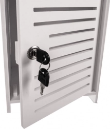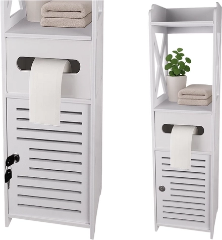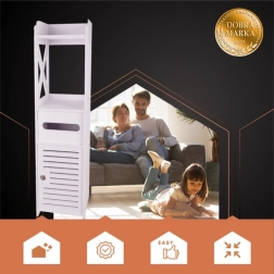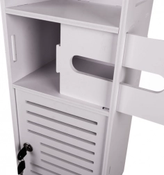 Stojaca kúpeľňová skrinka v bielej farbe je praktickým riešením pre skladovanie kozmetiky a čistiacich prostriedkov. Vďaka zamykaniu na kľúč chráni obsah pred deťmi a má estetický dizajn, ktorý sedí každej kúpeľni.