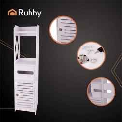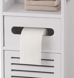 Vylepšite svoju kúpeľňu s touto bielou stojacou skrinkou, ktorá svojím časovým a praktickým dizajnom ponúka mnoho výhod: