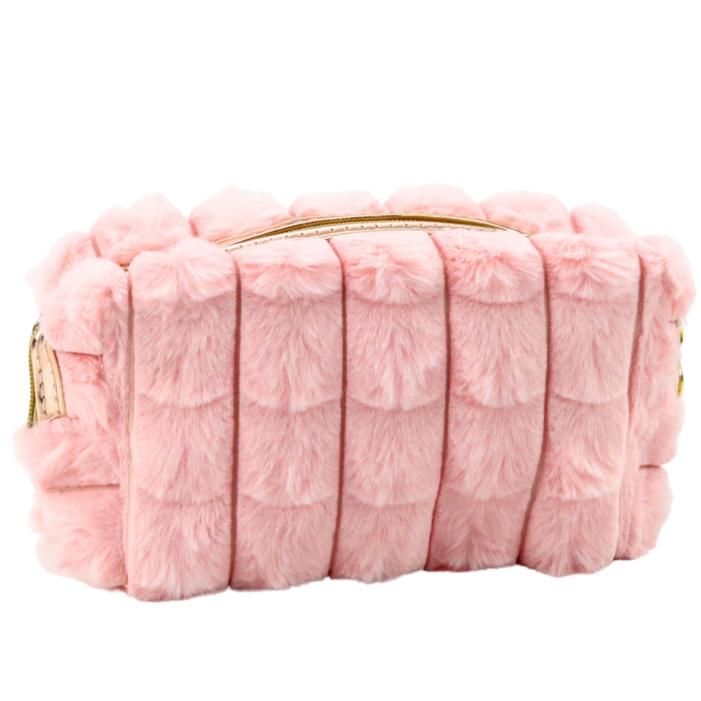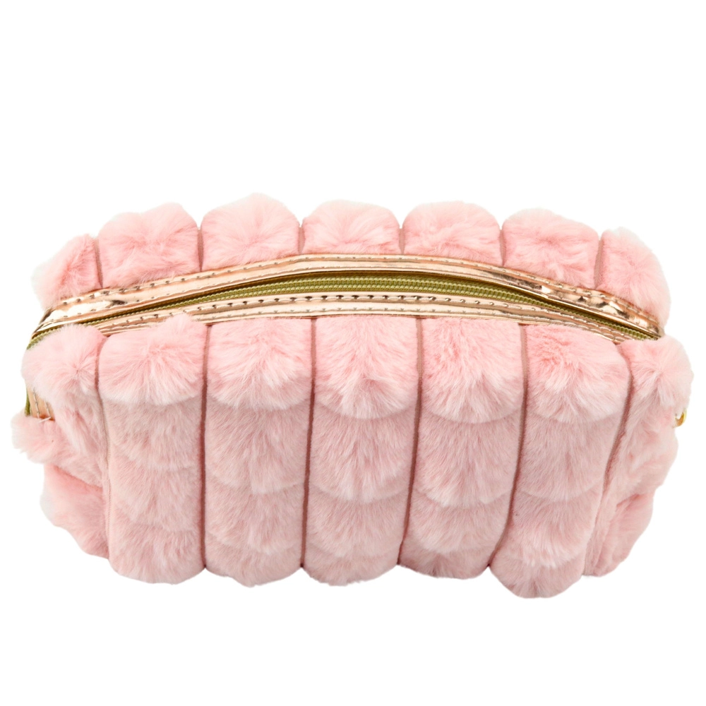 Elegantná a príjemná na dotyk, plyšová kozmetická taška je ideálnym doplnkom na každý deň. Vyrobená z mäkkého, plyšového materiálu v jemnej ružovej farbe, nielenže poteší oko, ale tiež sa pýši svojou praktickosťou. Jej moderný dizajn dokonale ladí s aktuálnymi trendmi a je vybavená žiarivým zipsom a ozdobným uchom v odtieni medenej ruže.