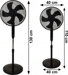 Ďalšou výhodou je výšková nastaviteľnosť od 110 do 130 cm, čo umožňuje optimálne prispôsobenie ventilátora vašim potrebám. Vďaka nastaviteľnému náklonu a oscilácii dosiahnete kompletnú kontrolu nad smerom prúdenia vzduchu a úrovňou chladenia.