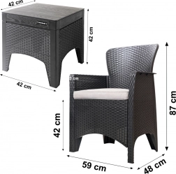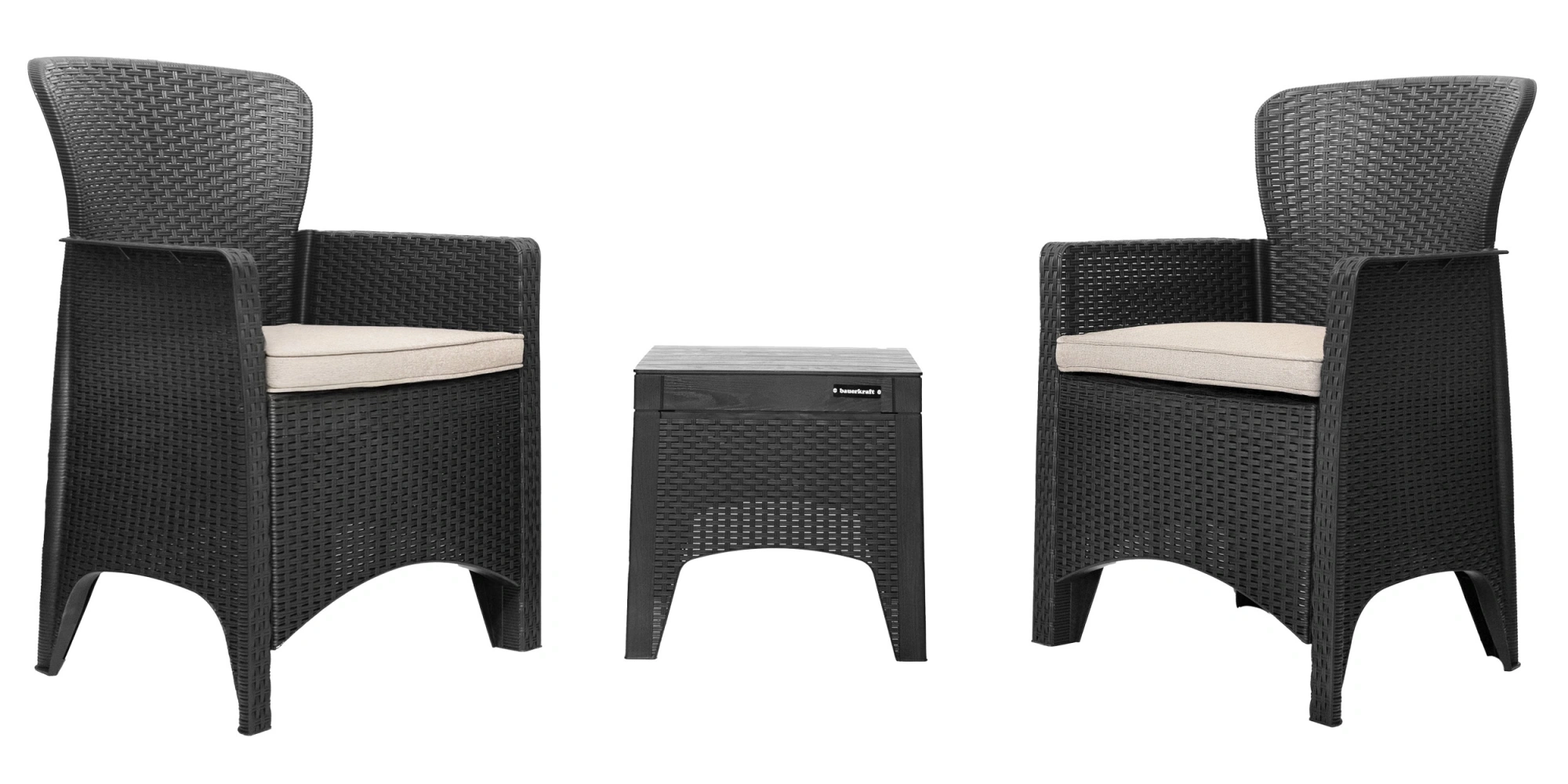 Premyslený dizajn ponúka vodoodolné vankúše, ktoré chránia proti vlhkosti a ľahko sa čistia. Konštrukcia je vyrobená z odolného polypropylénu s povrchovou úpravou v technoratánovom štýle, ktorá poskytuje elegantný, moderný vzhľad a odolnosť voči UV žiareniu a dažďu. Hladký povrch sa ľahko čistí a zachováva vzhľad sezónu po sezóne.