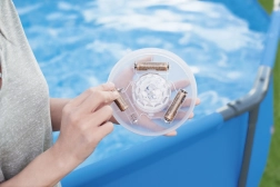 Táto moderná LED lampa je jednoduchá na použitie: stačí vložiť tri batérie AA (nie sú súčasťou balenia), umiestniť lampu na hladinu vody a stlačiť tlačidlo na vrchole. Nepotrebujete žiadne káble ani pripojenie k elektrickej sieti. Navrhnutá tak, aby jemne osvetľovala plochu vody o šírke 2,43 m a hĺbke 1,52 m. Automaticky sa vypne po hodine bez činnosti.