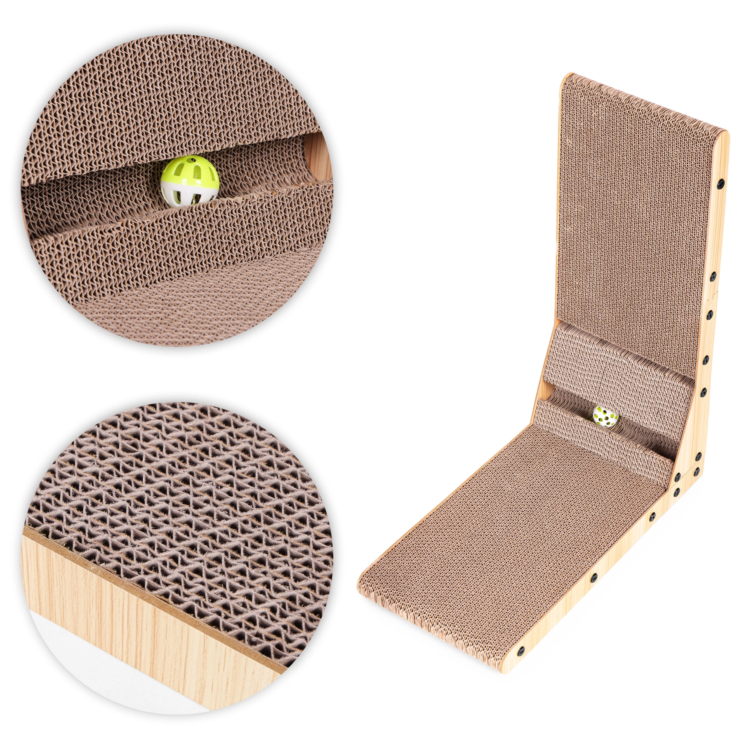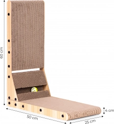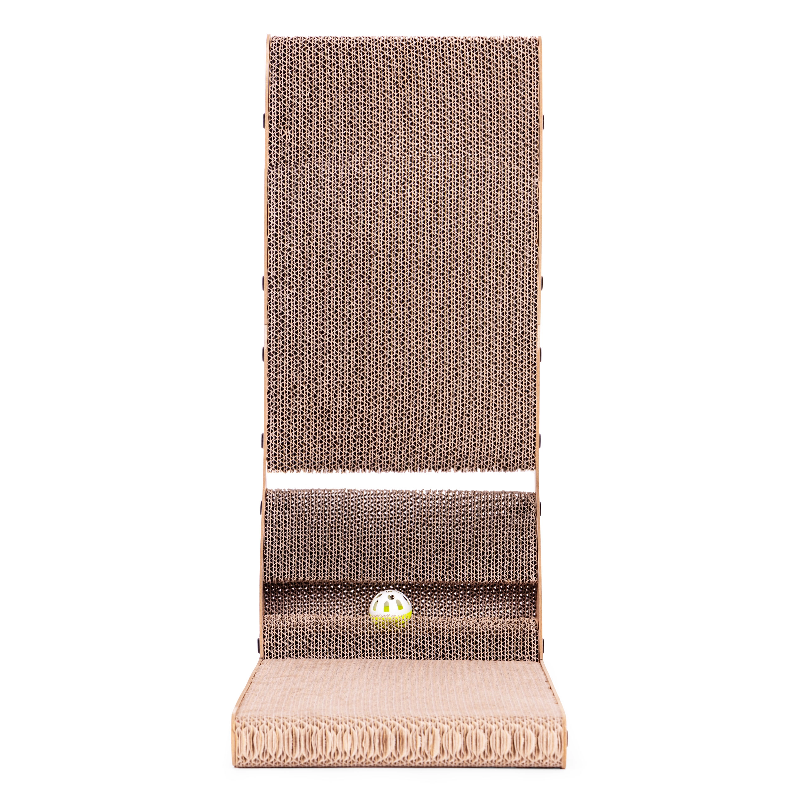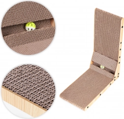 - Škrabadlo je vyrobené z odolného, vrstveného kartónu, ktorý je ideálny pre ostrenie pazúrov. Textúra kartónu prirodzene láka mačky, stabilita a odolnosť škrabadla je zaistená MDF rámom.