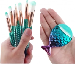 Táto súprava obsahuje štetce pre všetky fázy líčenia – od nanášania make-upu, miešania očných tieňov až po precízne kontúrovanie. Jemné, syntetické štetiny sú šetrné k pokožke a ergonomické, dúhové rukoväte v tvare morského chvosta dokonale padnú do ruky a zároveň zdobia každú kozmetickú taštičku.