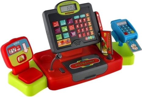 - Svetelné a zvukové efekty, funkčná kalkulačka, čítačka/slot na kreditnú kartu, váha na ovocie a zeleninu