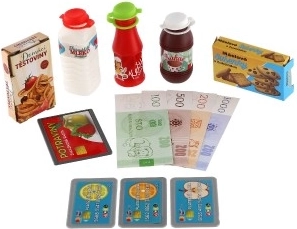 - Makety bankoviek, mincí a potravín – všetko pre kompletnú výbavu obchodu.