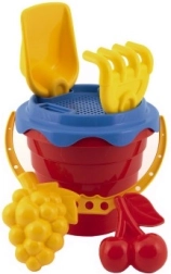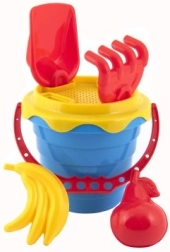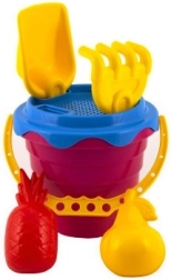 Obsahuje praktické vedierko o veľkosti 12 cm, ktoré je doplnené sitkom pre oddelenie väčších častíc piesku. K súprave patrí tiež lopatka, hrabličky a dve tvarovacie bábovky, čo umožní vášmu dieťaťu vytvárať originálne pieskové stavby.