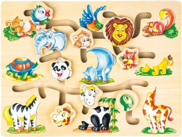 Drevený labyrint so zvieratkami je ideálnou pomôckou na rozvoj detských zručností už od útleho veku. Vďaka farebným motívom a pohyblivým dielikom deti ľahko pochopia, ako priradiť správnu hlavu k telu zvieraťa, a zároveň si precvičia koordináciu ruky a oka.