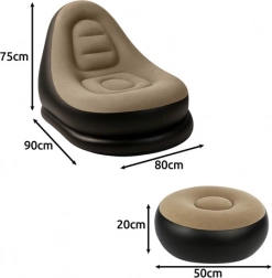 Odolné a trvácne nafukovacie kreslo vyrobené z pevnej vrstvy PVC s príjemným povrchom pripomínajúcim zamat. Moderné ventily zabraňujú rýchlemu úniku vzduchu. Ideálna voľba pre tých, ktorí hľadajú trvácne kreslo do obývačky, spálne či na záhradu.