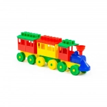Farebná vlaková sada pre deti je vyrobená z odolného plastu a je ľahko zostaviteľná pomocou vzájomne prepojiteľných blokov rôznych farieb. Lokomotíva a vagóny ponúkajú skvelú príležitosť na hru a vzdelávanie. Deti môžu:
