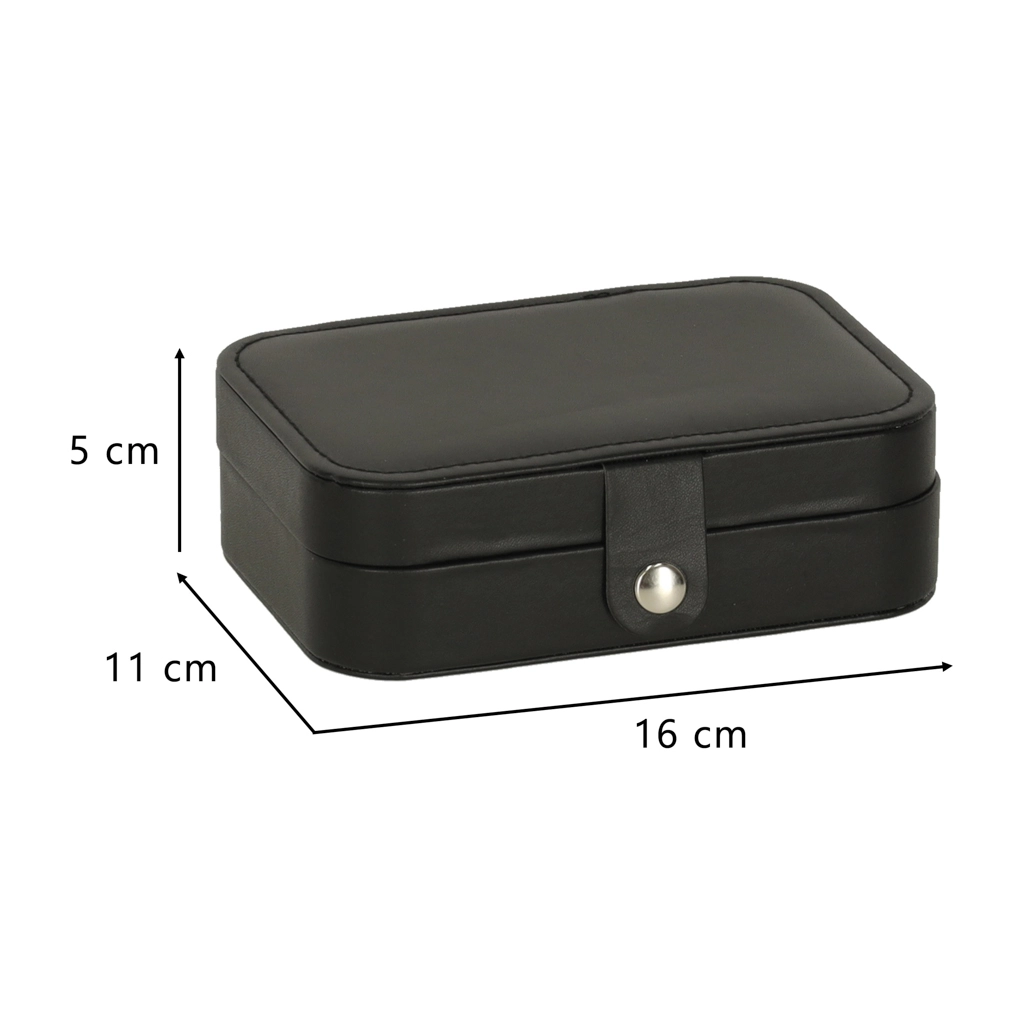 Odolný povrch v čiernej farbe, pevné zapínanie na patent a precízne prešitie. Šperky zostávajú v bezpečí doma aj na cestách, bez poškriabania a strát.