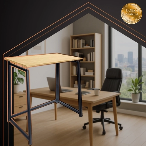 Kompaktný skladací stôl RUHHY v industriálnom štýle spája úsporu miesta, rýchle zloženie v priebehu pár sekúnd a stabilnú kovovú konštrukciu s drevodekorom. Ideálny pre home office, štúdium aj malé byty.