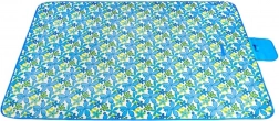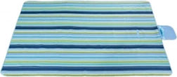 Deka je dostupná v dvoch atraktívnych dizajnoch – modré kvety a modro‑zelené pruhy. Spodná vrstva je vodoodolná, takže je ideálna do parku, na pláž aj na festival. Integrované ucho na nosenie a suchý zips zaručujú rýchle zloženie a pohodlný transport.