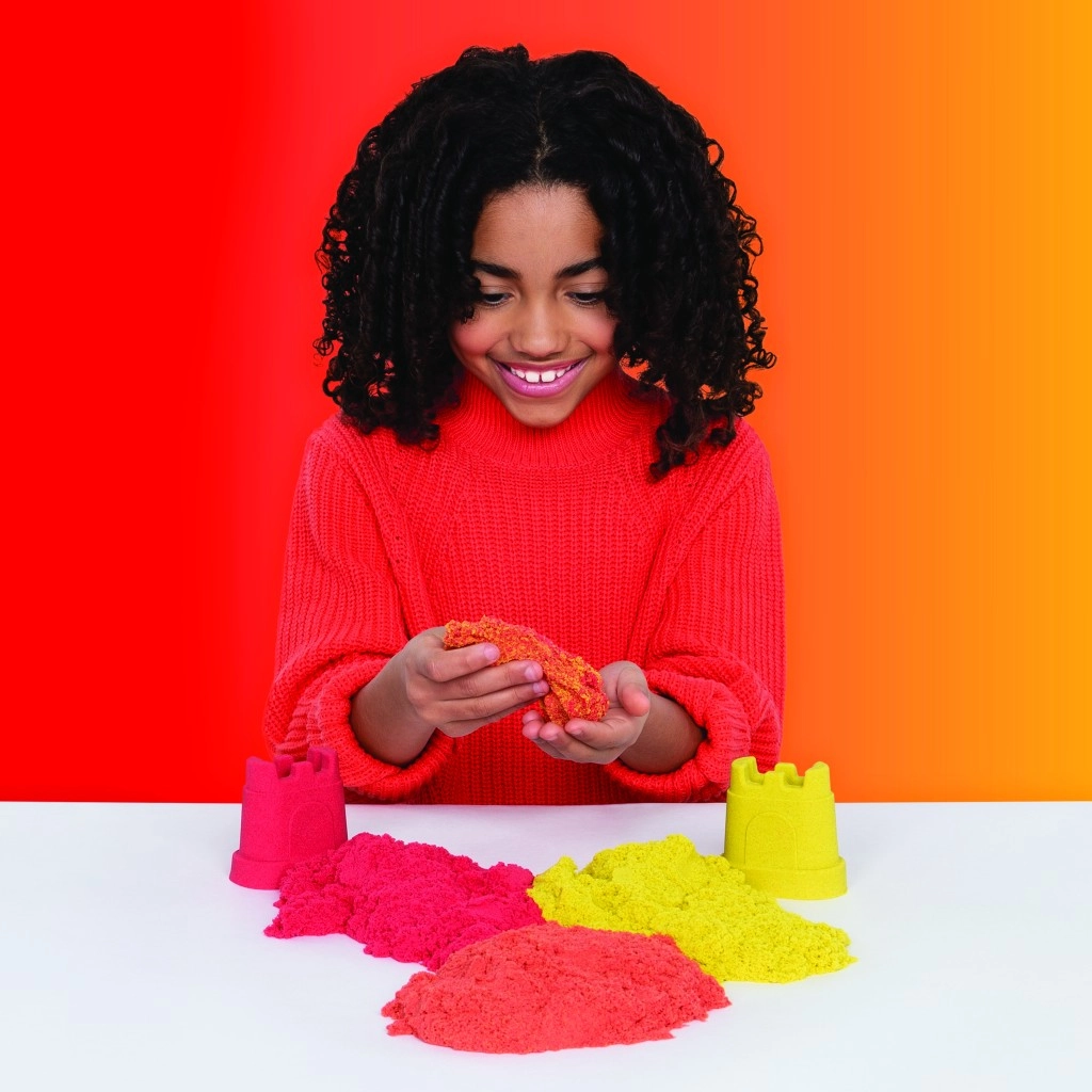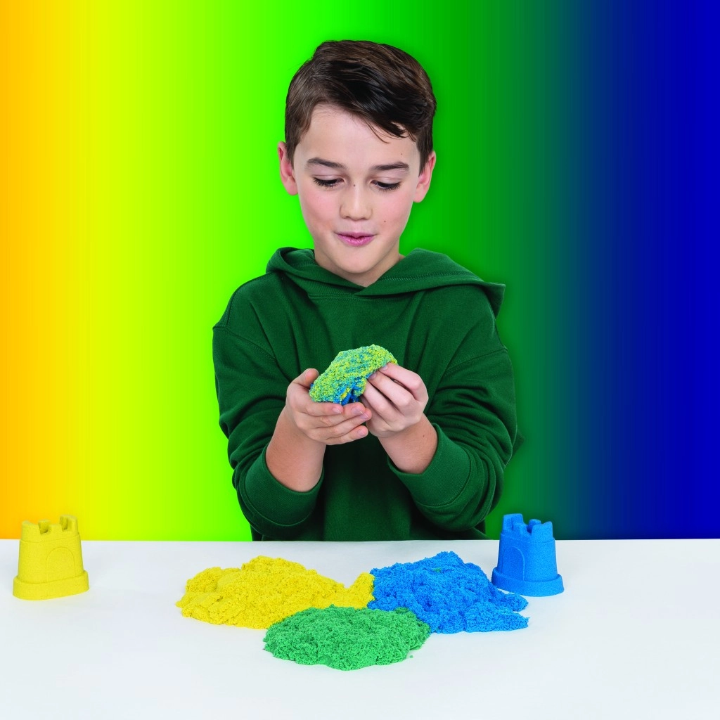 Táto sada kombinuje ikonický piesok Kinetic Sand s praktickými nástrojmi na rezanie, miešanie a formovanie. Vytvárajte realistické dúhy, vrstvite farby a stavajte pestré hrady – piesok drží tvar, nelepí sa a je príjemný na dotyk.