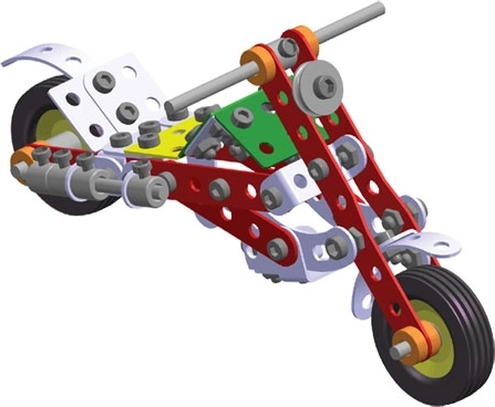 Zostavte jeden z desiatich možných modelov motocyklov z tejto stavebnice. Ukážte svoju kreativitu a technické schopnosti.