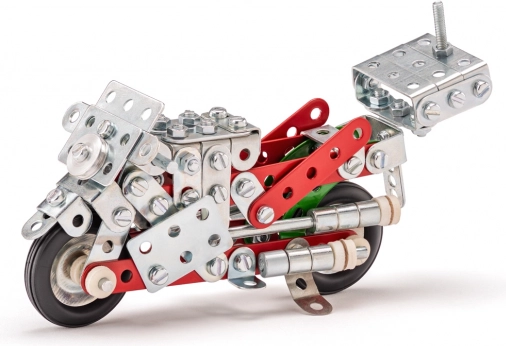 Stavebnica Merkur Motocykel ponúka možnosť zostavenia desiatich rôznych modelov motocyklov a iných vozidiel. Vďaka tejto stavebnici deti rozvíjajú svoju kreativitu, logické myslenie a jemnú motoriku. Každý model ponúka nový zážitok z konštrukcie a umožňuje neobmedzenú zábavu.