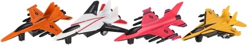 Tento set stíhačiek obsahuje oranžovú, bielu, ružovú a žltú variantu, čo deťom umožňuje vybrať si podľa svojej nálady.