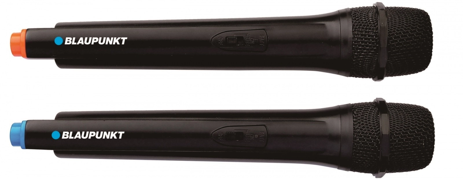 Súčasťou je aj jeden bezdrôtový mikrofón ideálny pre karaoke, s automatickým spojením s reproduktorom. Odporúča sa použitie funkcie „mikrofónová priorita“, ktorá utlmí hudbu počas spevu, pre lepší zážitok. Možnosti pripojenia zahŕňajú aj 6,3mm vstup pre gitaru a AUX port pre ďalšie audio zariadenia.