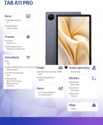 Tablet Ulefone Tab A11 Pro vás zaujme svojím moderným dizajnom a tenkými rámčekmi, ktoré poskytujú maximálnu plochu pre sledovanie obsahu. Vďaka MediaTek Helio G99 procesoru a 8 GB RAM je zaistený plynulý chod i pri náročných úlohách, a to aj pri možnosti virtuálne rozšíriť RAM o ďalších 8 GB.