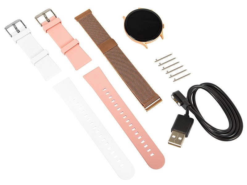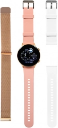 Chytré hodinky X19 ružové sú dokonalým doplnkom na každý deň. Vďaka trom vymeniteľným náramkom - zlaté, biele a ružové - jednoducho prispôsobíte svoj vzhľad podľa nálady. Užite si dotykový displej s rozlíšením 360x360 px, ktorý poskytuje ostrý a jasný obraz.