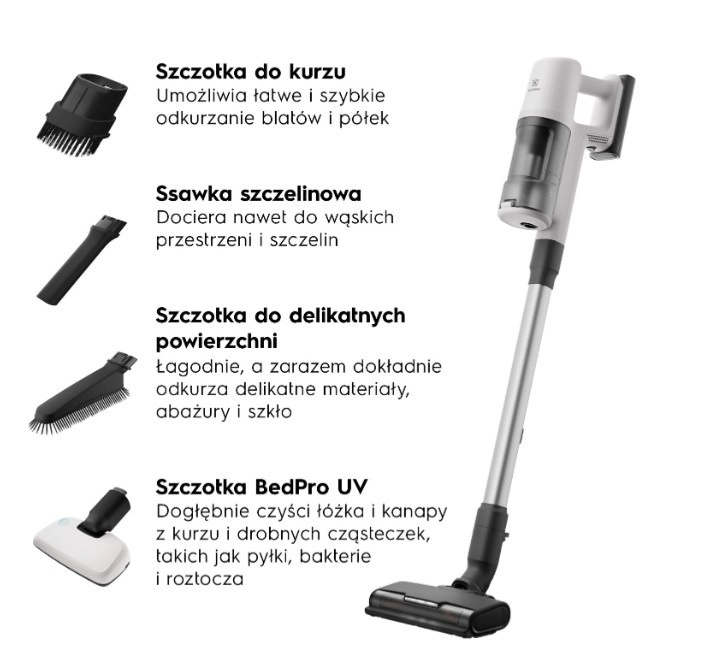 Vďaka kefke BedPro s ultrafialovým žiarením dosiahnete dokonalú čistotu, ktorá zasahuje hlboko do čalúnenia a kobercov, čím odstraňuje skrytý prach a vlákna.