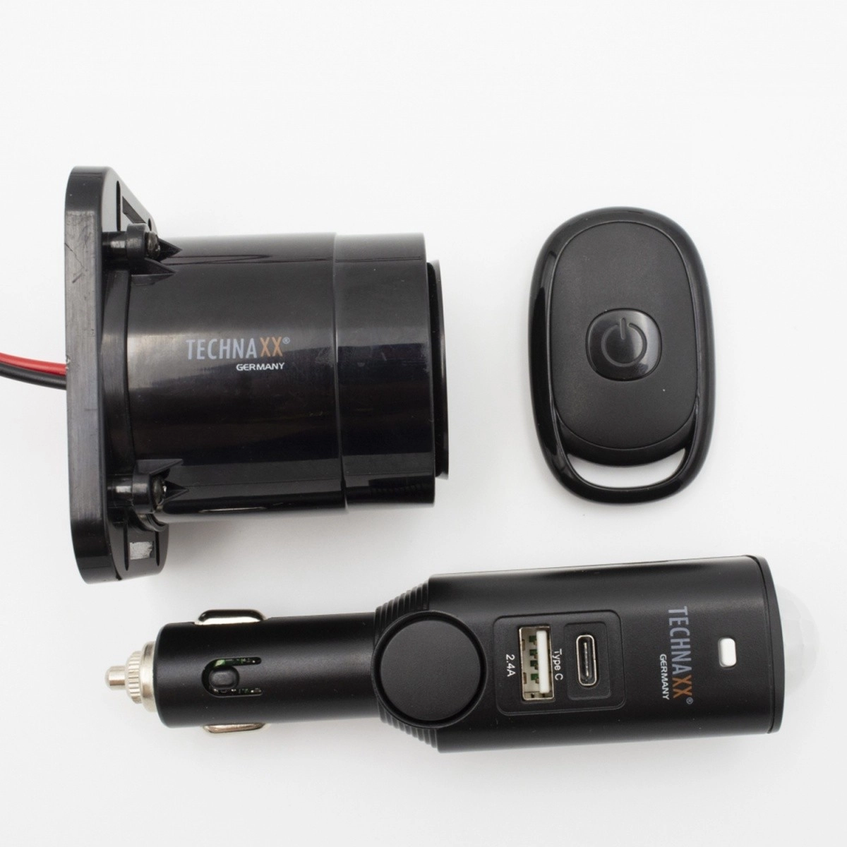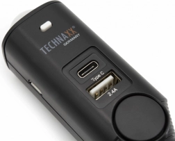 Ďalej je vybavený pilotom na infračervené ovládanie s dosahom až 10 metrov. Integrované USB porty zaisťujú pohodlné dobíjanie zariadení s rôznym výstupným výkonom: USB-C s výstupom 5V/3,0A a klasický USB port s 5V/2,4A. Aktivácia na základe detekcie pohybu prostredníctvom PIR senzora umožňuje automatické spustenie alarmu.