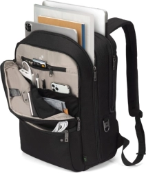 Ochranná komora na notebook s centrálnou podporou v tvare písmena V zabezpečuje, že zariadenie zostane bezpečne na svojom mieste a optimálne nastavené. Predná komora s usporiadanými vreckami udržuje príslušenstvo a nevyhnutné veci na svojom mieste, zatiaľ čo ergonomický, priedušný chrbát poskytuje celodenný komfort.
